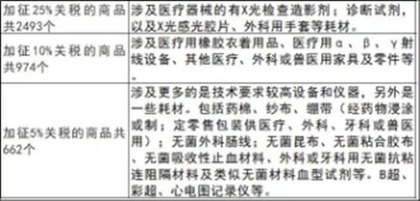 從國務(wù)院發(fā)布的公告來看,公告中提到的600億美元商品清單時發(fā)現(xiàn),涉及醫(yī)療器械的產(chǎn)品不僅有大型醫(yī)用設(shè)備儀器,同時也包括耗材和試劑。