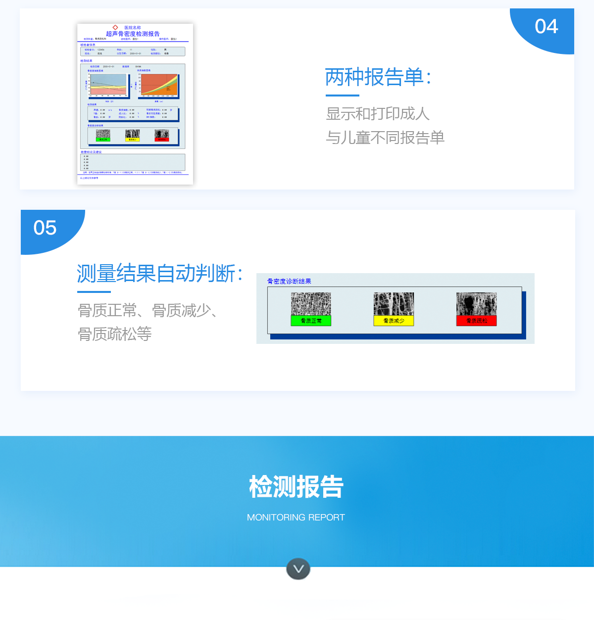 ■ 軟件優(yōu)勢::BMD-A系列超聲骨密度檢測儀一臺儀器裝配有智能分析系統(tǒng),經(jīng)濟(jì)實用??蓽y量0-100歲人群。